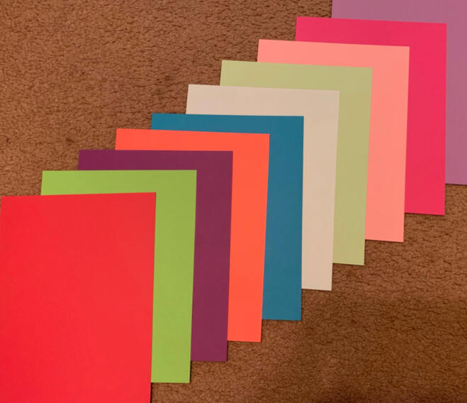 Solid color backing paper is double sided, slightly thicker, and I have more of it than the patterned kind. Badges with patterned paper will be more flexible. Ignore my crusty ass carpet.💔